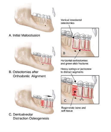The cutting of the bone leads to inflammatory changes in that region. The entire metabolism of the bone changes in that area. A pressure and tension zone is created which causes losing of certain mineralized tissues from that area. After a certain period of time, the altered position of the bone begins to remineralize. Since the bone itself moves, so does the tooth or the teeth. The involvement of orthodontic wires and braces can further facilitate the movement of the teeth.