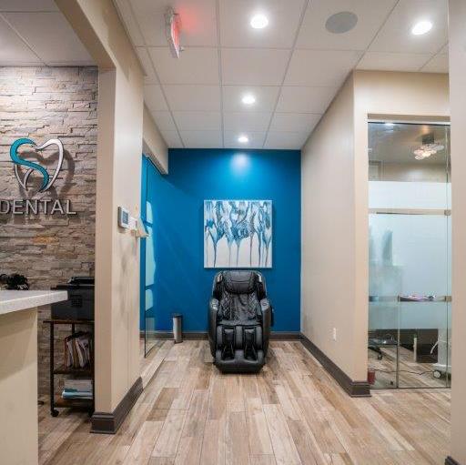 Comfortable waiting area at 10 Day Smiles in Coppell TX featuring a relaxing massage chair for a cal